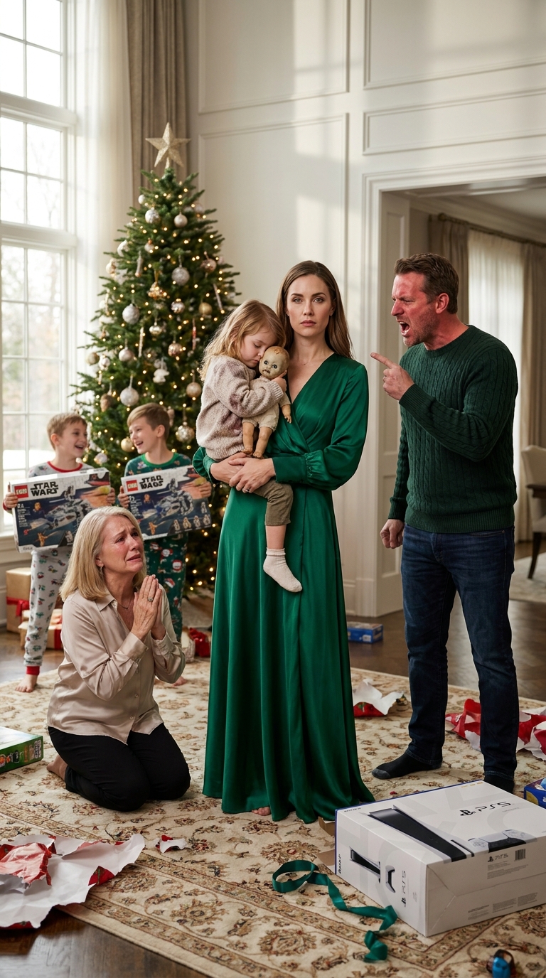 „Wyobraź sobie” – powiedział Ethan, a jego głos przeciął świąteczną muzykę niczym ostrze brzytwy. Odchylił się do tyłu, krzyżując nogi w pozie absolutnej wyższości. „Prezenty dla biednych dzieci, dla biednych dzieci”.
