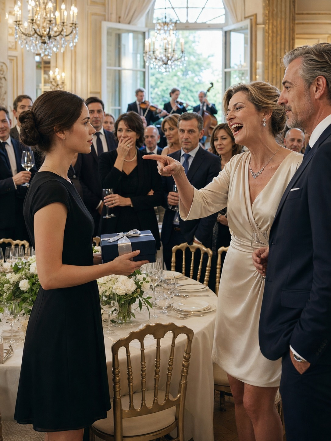 W pomieszczeniu rozległ się niemal niesłyszalny dźwięk. Nie krzyk. Nie gwałtowne szarpnięcie. Raczej zbiorowy pisk tłumu, który zdał sobie sprawę, że prywatna rodzinna brzydota stała się właśnie formą rozrywki.