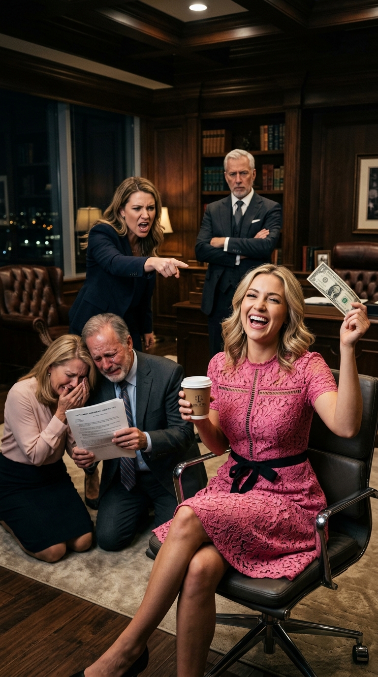 Helen, moja matka, miała na sobie czarny, designerski garnitur szyty na miarę, który kosztował więcej niż mój samochód. Wystukiwała zadbane paznokcie szybkim, irytującym staccato rytmem o wypolerowany mahoniowy stół. Chloe, dwudziestoczteroletnia i promieniująca niezasłużoną dumą, niemal podskakiwała na swoim pluszowym, skórzanym fotelu, swobodnie przeglądając oferty luksusowych nieruchomości w Toskanii na swoim najnowszym iPhonie. Richard, mój ojciec, co trzydzieści sekund sprawdzał swojego Rolexa.